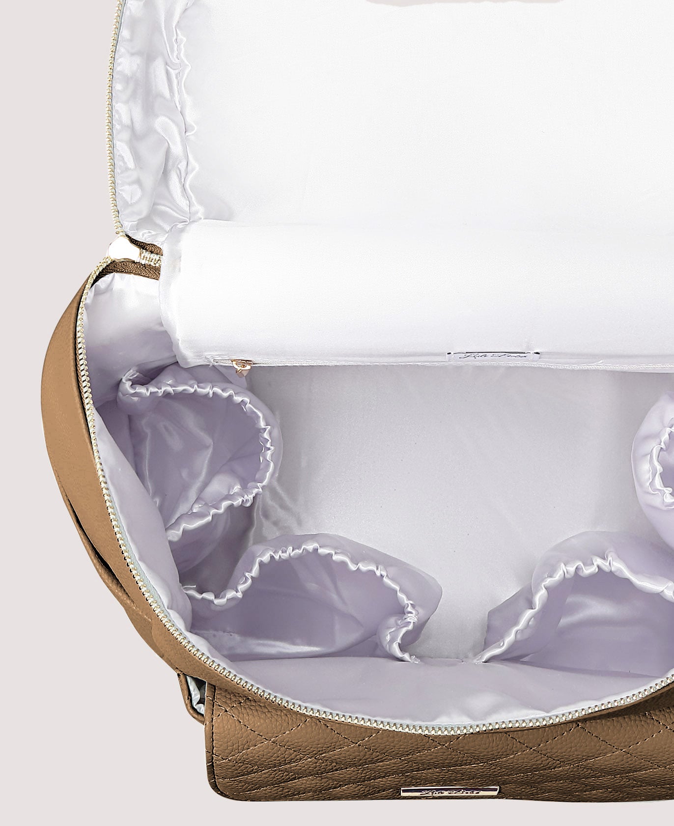 Complete with a matching changing pad, stroller straps, and messenger strap, the Latte Monaco is the ultimate travel diaper bag. Roomy enough for bottles, diapers, wipes, mom’s laptop, and outfit changes, it transitions seamlessly from daily outings to weekend trips and long-haul travel.
